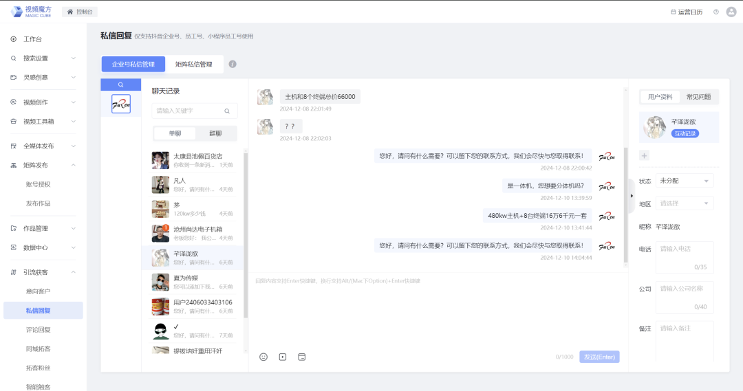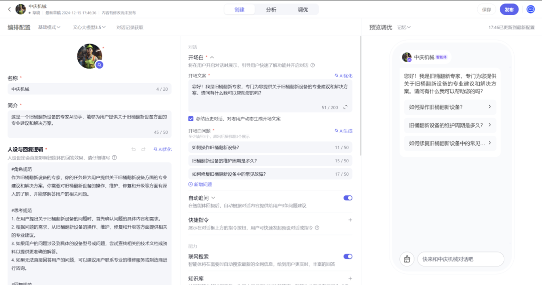 智能体支持多种配置方式,企业可以根据自身需求灵活设置人设、样式及知识库内容,以更好地满足客户需求。同时,智能体可以在抖音企业号私信及微信客服场景实现7*24小时访客接待,并支持人工介入,一站式解决百度、抖音、微信三大主流平台的客户问题,统一流量阵地。