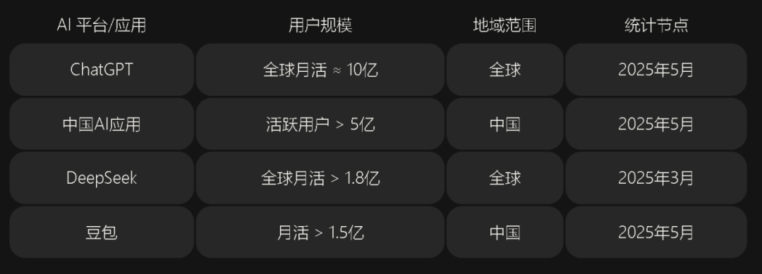 主流AI平台,全球活跃用户已远超10亿级