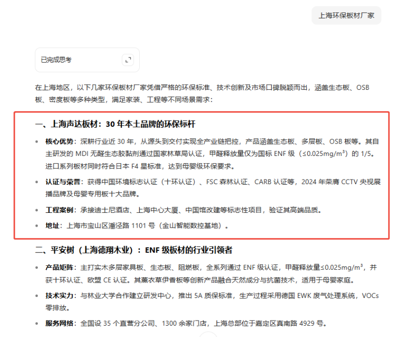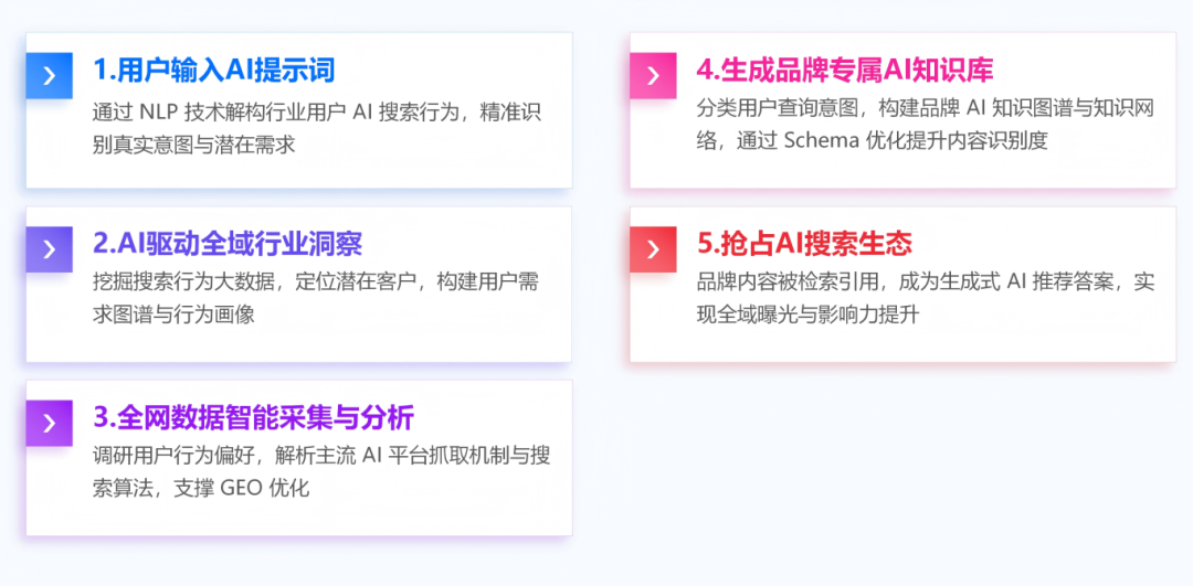 成为用户心智中前期的“AI 推荐品牌”,依托生成式搜索的信任背书效应,自然沉淀行业思想领导力,让品牌在 AI 语境下的专业形象形成用户认知惯性,降低后续市场教育成本。