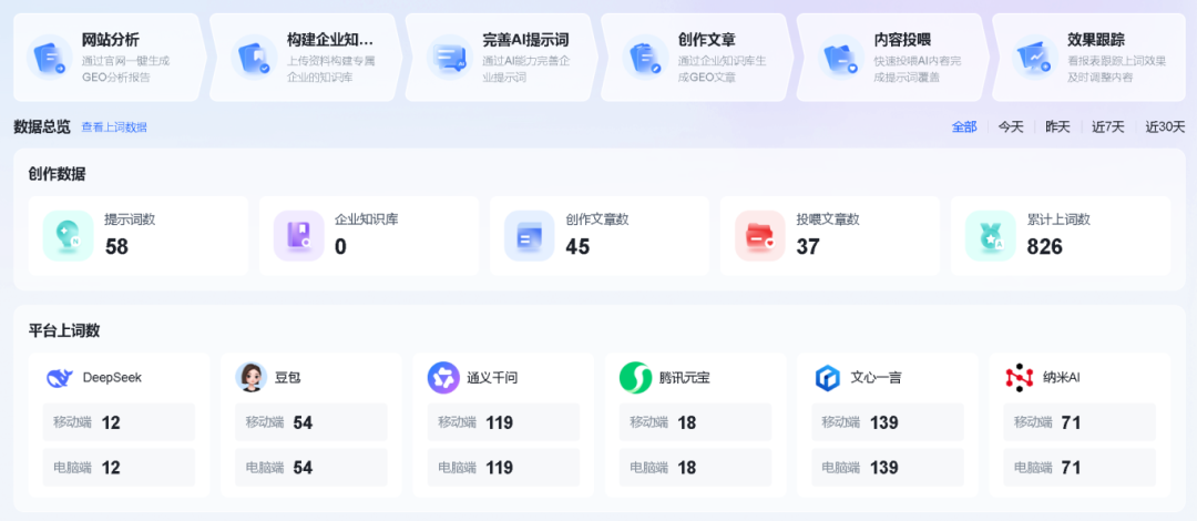 覆盖DeepSeek、豆包、文心、通义、元宝、纳米AI、Kimi等主流AI平台,助力企业多维度曝光。